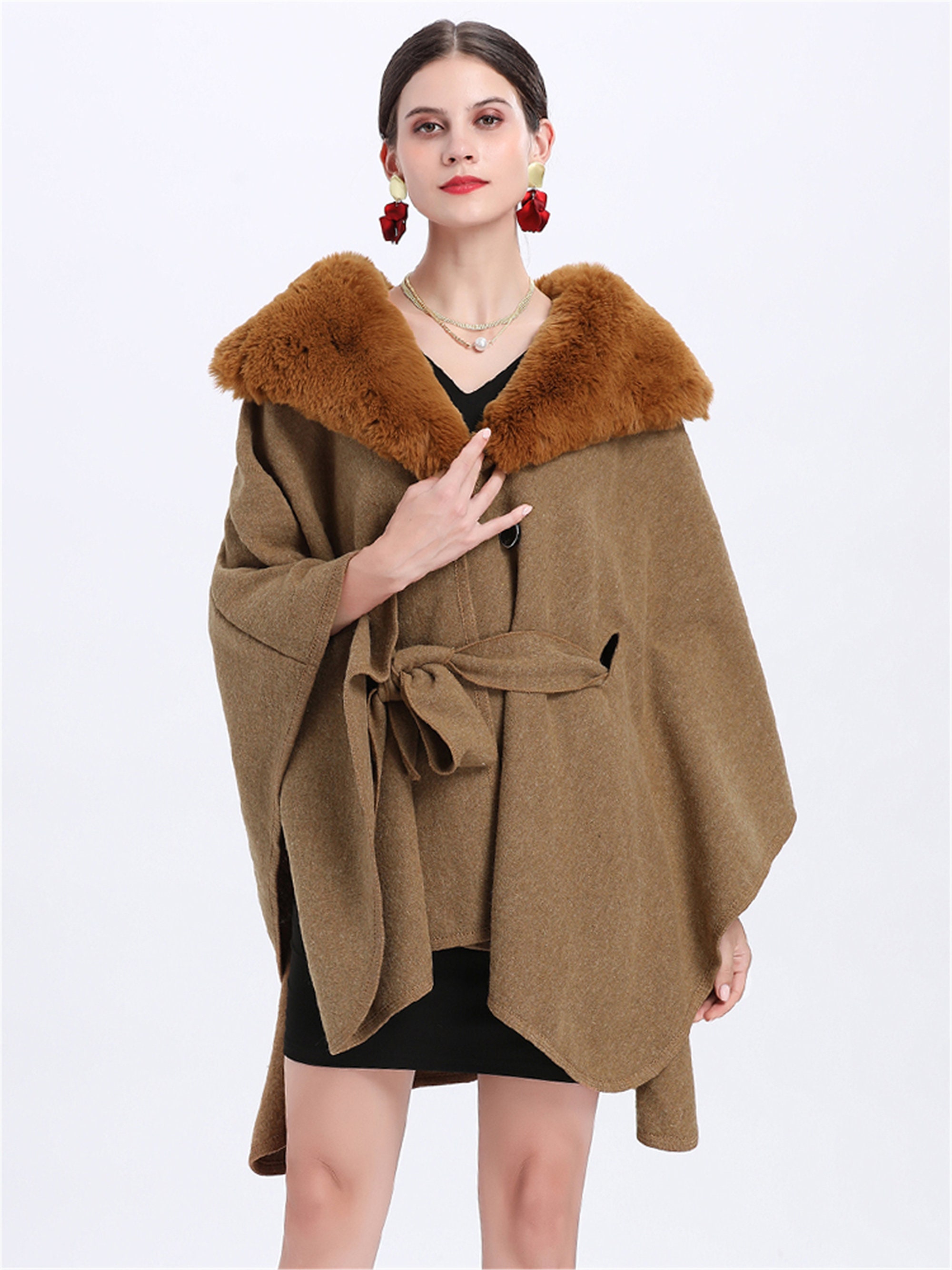 Regular Tweed Cape With Faux Fur Collar Rj Joinery