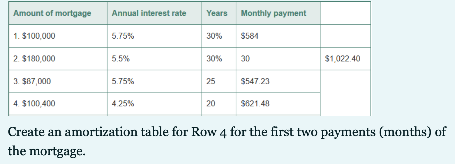 Solved Create An Amortization Table For Row 4 For The First Chegg Com
